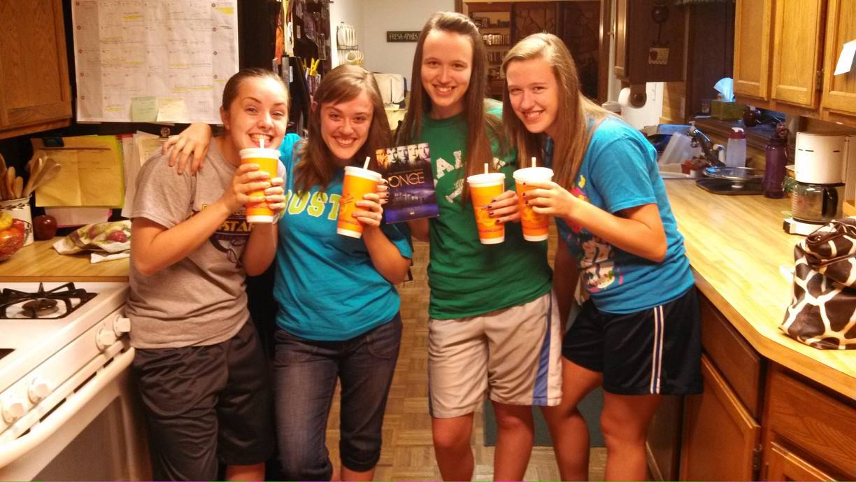 And thennnn, when we got home, five seconds after we'd stepped inside, a car pulls up and Mom goes to greet it. Suddenly I realized who it was - OUR BIG SISTER KARA!!! :) Best surprise everrr! FYI, Kara is not really our sister. We just "adopted" her after she coached my younger sisters in basketball for two years. Us girls begged Mom and Dad basically this whole past week if Kara could come over for Labor Day weekend. And turns out, she was able to come till midnight last night to watch more 'Once Upon a Time' (of course!!!) and goof off by taking crazy pictures which I will share below! :) We're so thankful that God brought Kara into our lives. She is this crazy, sweet, adorable girl that we love dearly! :)